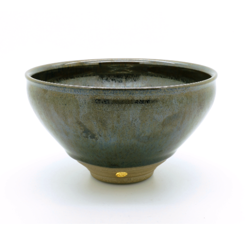 傳承北宋柴燒之法,有細弱銀絲、多樣結晶的斑點,表面因釉彩的熔融帶著不平滑質感,手握時更加古樸而沉韻。每個作品上都有金色落款,是外圓內「法」,亦或外圓內方,金色有宗教上的意涵,特別在佛教上也是「智慧」的象徵。