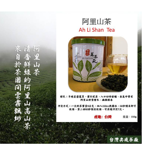 0 阿里山茶 產品分類:烏龍茶 廠商名稱:奕成茶廠 攤位號碼:J1004 產品特色 芽葉柔軟 , 香氣淡雅 , 翠綠鮮活 相關產品 凍頂茶梅 高山翠玉茶 奕成台灣 老茶 素食茶 金萱茶 福壽梨山茶 杉林溪茶 黃金烏龍茶 凍頂烏龍茶 您可能有興趣的產品 筑淨茶苑 - 霧香烏龍 各式高山茶 阿里山炭焙烏龍茶 雪見烏龍茶包 雪見高山茶冬茶 阿里山工藝紅茶 2025大禹嶺頂級春茶 有機鐵觀音烏龍茶 雪見高山茶原片烏龍茶茶包 展會限定・山之甜點 梨山茶鑽石餅 梨山高山茶 烏龍紅茶 佳葉龍茶-GABA TEA 大禹嶺烏龍茶 商務茶包 25入裝 松赫之崗 高山烏龍茶 大禹嶺 高冷茶 三角立體茶包 福壽山烏龍茶 冬 高山烏龍茶 梨山烏龍茶 春 高山茶禮盒 福壽山烏龍茶 春 炭焙高山烏龍 梨山烏龍茶 冬 人氣產品專區 暮光之林 2023 江珠 展昭 南非國寶茶(原味/焦糖/香草蘋果/莓果風味) 山嵐之息 朝霞 流金雨 曦光 風痕 竹影 夜息 流雲 餘燼 2025 布朗-珍 生普洱茶 2025 布朗-玉 生普洱茶 滇洱古韻 春泉 小雪 小紅娘 金萱 凍頂茶梅 高山翠玉茶 奕成台灣 老茶 素食茶 金萱茶 福壽梨山茶 阿里山茶 杉林溪茶 黃金烏龍茶 凍頂烏龍茶 回列表