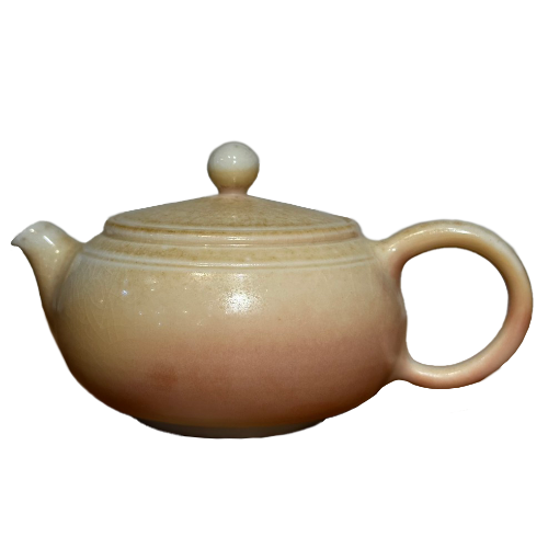 在烈火中經歷七天七夜的洗禮。當木灰落下、融化於壺身,便生成這層柔和的漸層色——由乳白過渡至淡紅,如朝霞拂過雲端。沒有釉藥,卻有自然的光澤與溫度。瓷土質地細密,能讓茶湯更清甜、香氣更集中;每一泡茶,都像火與土留下的餘韻。它不是被設計出來的美,而是時間與自然共同書寫的詩。