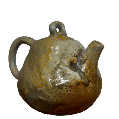 《風痕》是一把以手捏成形的柴燒壺,保留了指尖與泥土之間的律動。燒成後,火焰與氣流在壺身上留下自然的紋理與色澤,灰黃、赭褐交融,如山壁被風拂過的痕跡。沒有釉藥的設計,卻展現出火與土最真實的對話。每一道不完美,都是時間流過的印記,也是手作溫度最動人的存在。