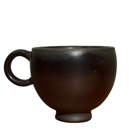《夜息》以來自五大洲、共十六種配方土手工揉合而成,每一種土都帶著不同的礦質與記憶。經過烈焰與還原火氣的洗禮,表面呈現由霧灰至深墨的漸層,如夜色靜靜沉降。沒有多餘的裝飾,卻在低調中閃爍著微光,如夜的呼吸般柔和而深遠。它象徵沈澱、內省與平靜的力量,是一只屬於靜夜的器。