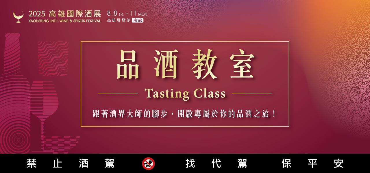 - 品酒教室課程不含入場門票,報名聽課者需另行購買展覽入場門票,或於2025/8/7(四)23:59前完成免費索票手續。