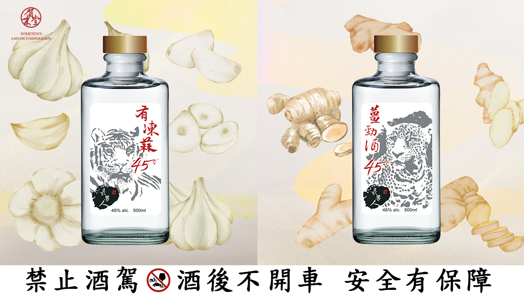 其中,「有凍蒜」結合台灣諧音當選、加油之意,酒液因萃取其中的蒜精呈現淡淡的金黃色澤,蒜香濃而不烈,香氣滿溢口中又不會如吃蒜頭般殘留蒜味,喝起來輕鬆無負擔;「薑勁酒」則取自李白「將進酒」的諧音,以溫潤薑香為賣點,更可搭配在熱水中滴入少許,感受著裊裊昇起的清爽薑香,喝起來沒有酒味,更像是在品味薑茶,主打女性、年輕族群與調酒市場,拓展高粱酒過去較少觸及的消費層面,一方面也推動「早薑晚蒜」的喝法,將品酒與生活習慣結合,讓「酒」也成為開門七件事的代表之一。