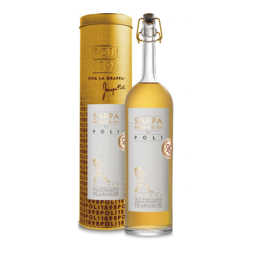 在 POLI 酒莊地窖中慢慢存放陳釀四年的經典款 Grappa,飽滿的異國水果果香,結合香草、堅果以及烤榛果等香氣。