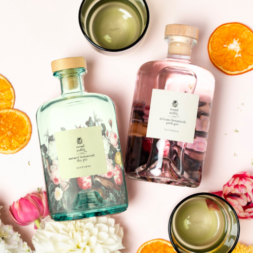 卿卿溫柔酒莊-原味琴酒(左)粉紅琴酒(右)