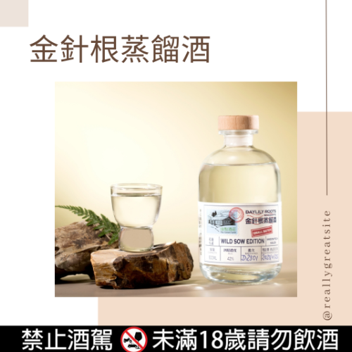來自以金針聞名花蓮玉里赤科山的綠點酒莊,經過反覆的田野調查和精心的研究,終於研發出了金針根蒸餾酒。