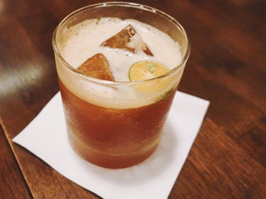 推薦理由:最近在酒吧掀起的茶酒風潮,帶有茶葉香氣的調酒很吸引人,尤其是以台灣茶烏龍茶為基底更是經典,並以紫蘇葉來裝飾,像是這杯台北最夯調酒吧的超人氣必點