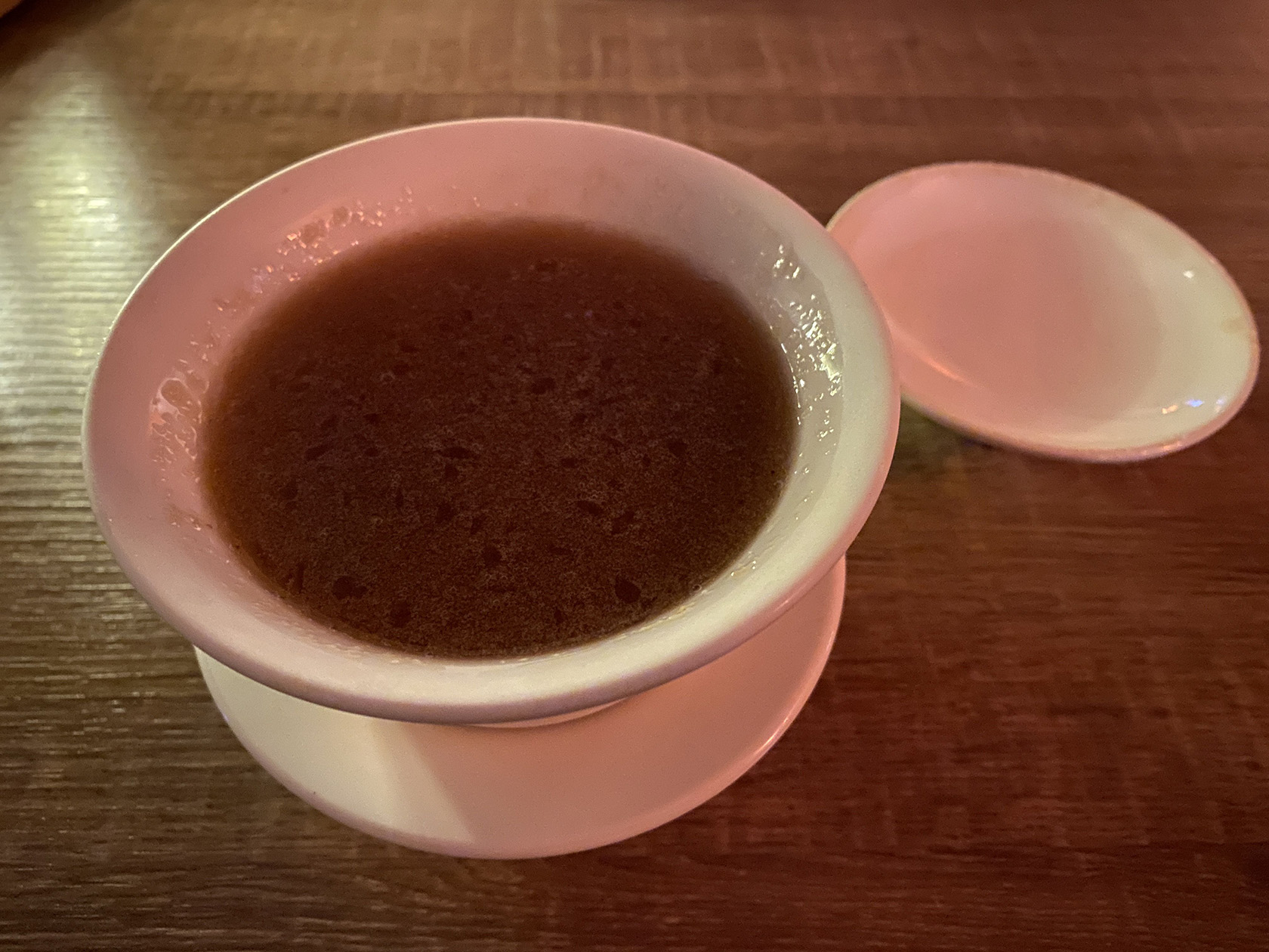 推薦理由:以茶作基底,就口後帶出木質調的微微辛辣感,配上豐盈的柑橘的水果風味,盛裝調酒的器皿也有著現代的中國味,個人覺得相當有層次的一款調酒。