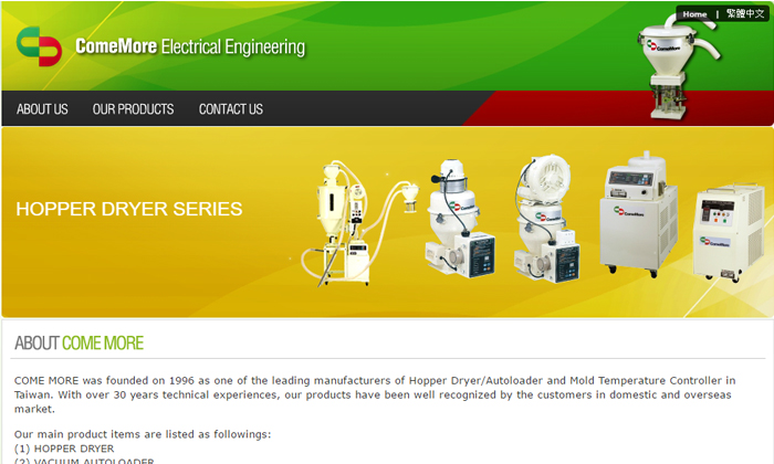廣茂電機累積三十年塑膠成型工業周邊設備的專業製造經驗,成立於1996年。主要產品包括:塑料乾燥機、自動填料機、模溫控制機、電熱元件…等,規格齊全、品質精良,廣獲海內外客戶肯定。