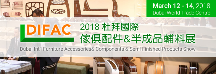 杜拜DIFAC是中東唯一專業的傢俱配件及半成品輔料展,與具有十二屆成功舉辦經驗的杜拜Woodshow強強聯手,同館舉辦。是中東地區傢俱廠商、板材商、建築商…等木業和傢俱業內人士每年必定參與的盛會。該展是板材、設備、傢俱輔料企業開發中東和北非市場的最重要的平台。上屆展會現場吸引來自全球超過300家企業參展,吸引專業觀眾高達9,455人次。