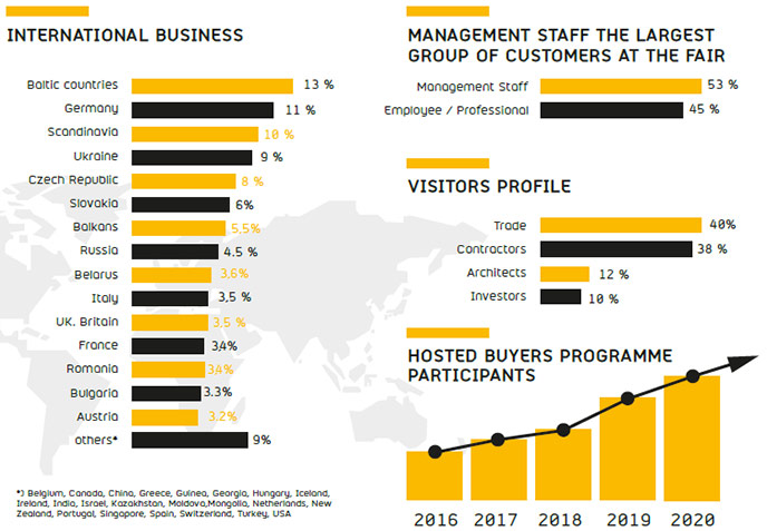 2020年有將近1,000家的企業在波茲南國際展覽中心展出,4天共計46,000名參觀者來訪,約100場會議、演講、培訓課程及展會同期活動在四天中舉行,為東歐建材行業的指標性展會。2022預計依照展出品項專業分別開立9個館別。