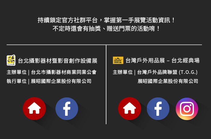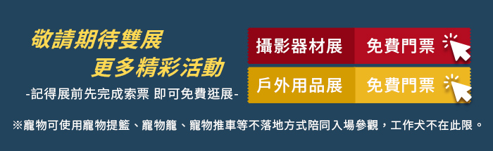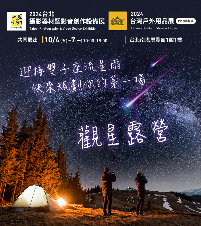台北攝影器材展、台灣戶外用品展10/4-7 南港展覽館1館1樓